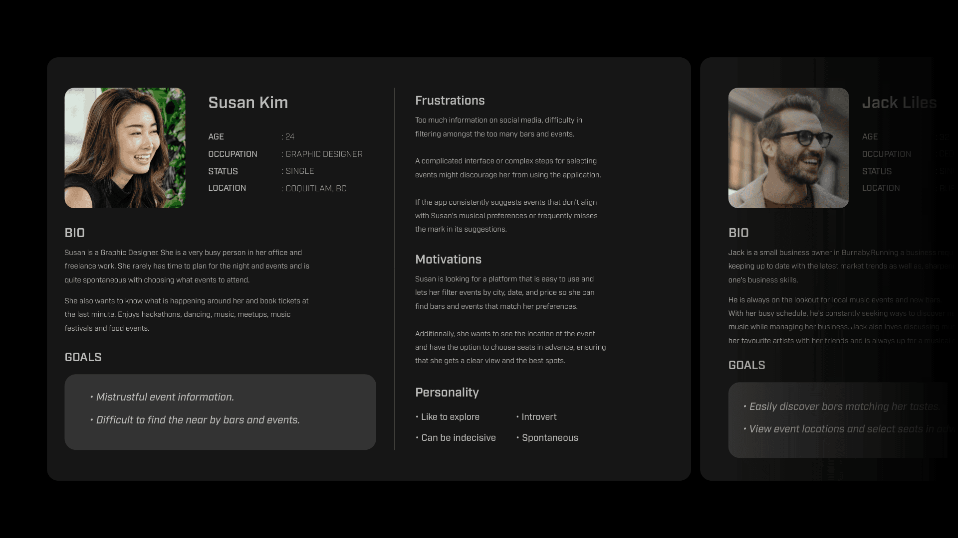 Difficulty in finding relevant and interesting bars and events in Vancouver. Inability to track and manage events and bars in a centralized location. Limited social features for sharing and discussing events with friends and other attendees. Inconvenient ticket purchase process